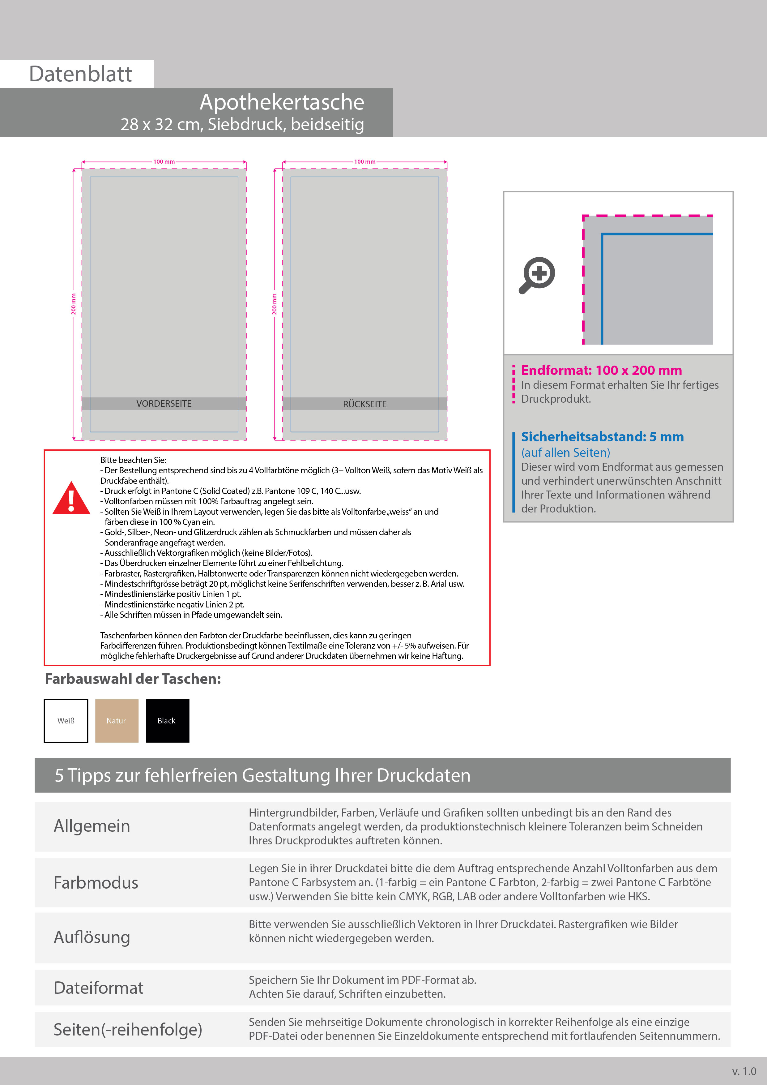 Apothekertasche 28 x 32 cm, 1-farbig, beidseitig bedruckt