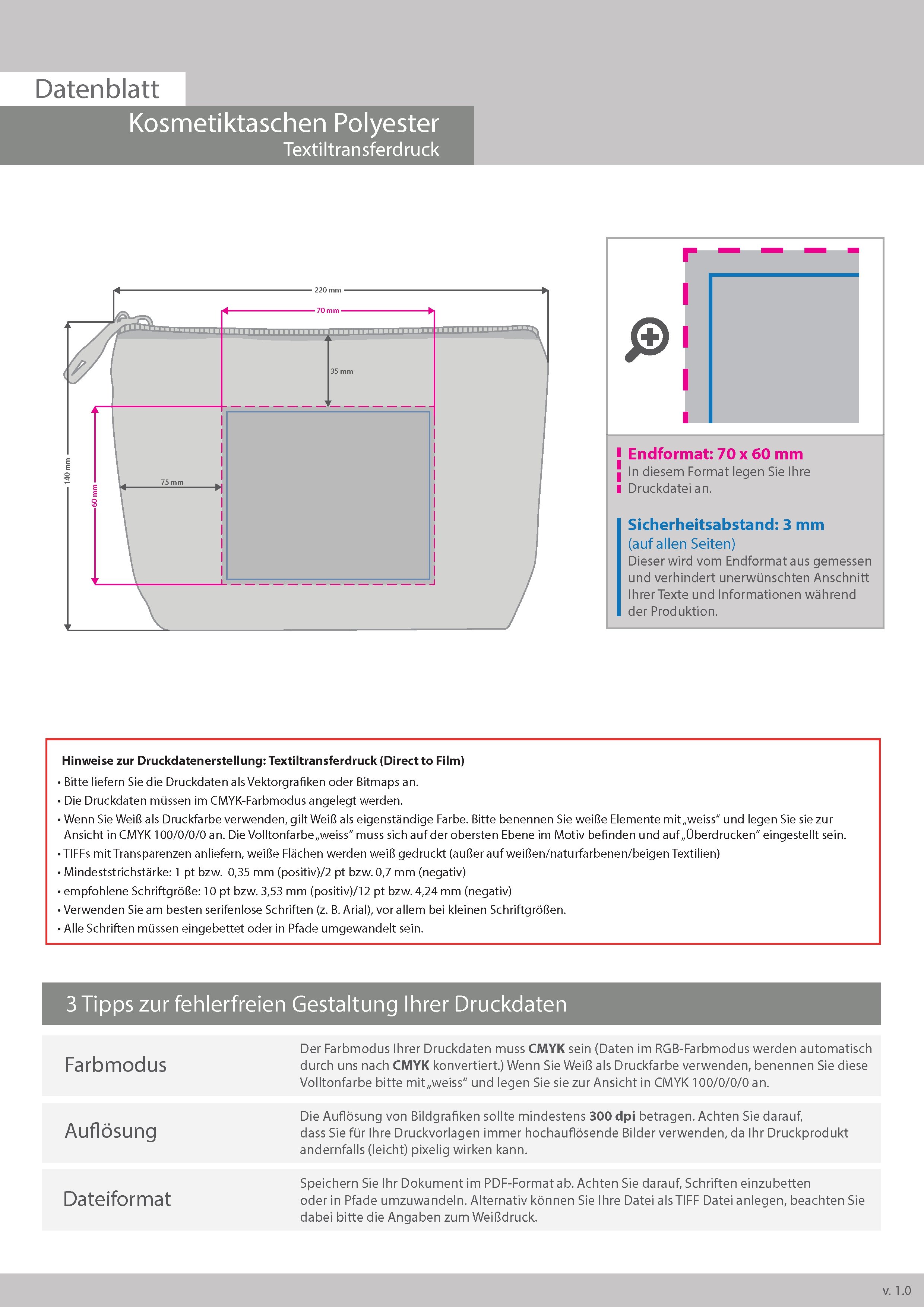Kosmetiktasche Polyester, 4/0 farbig, einseitig bedruckt