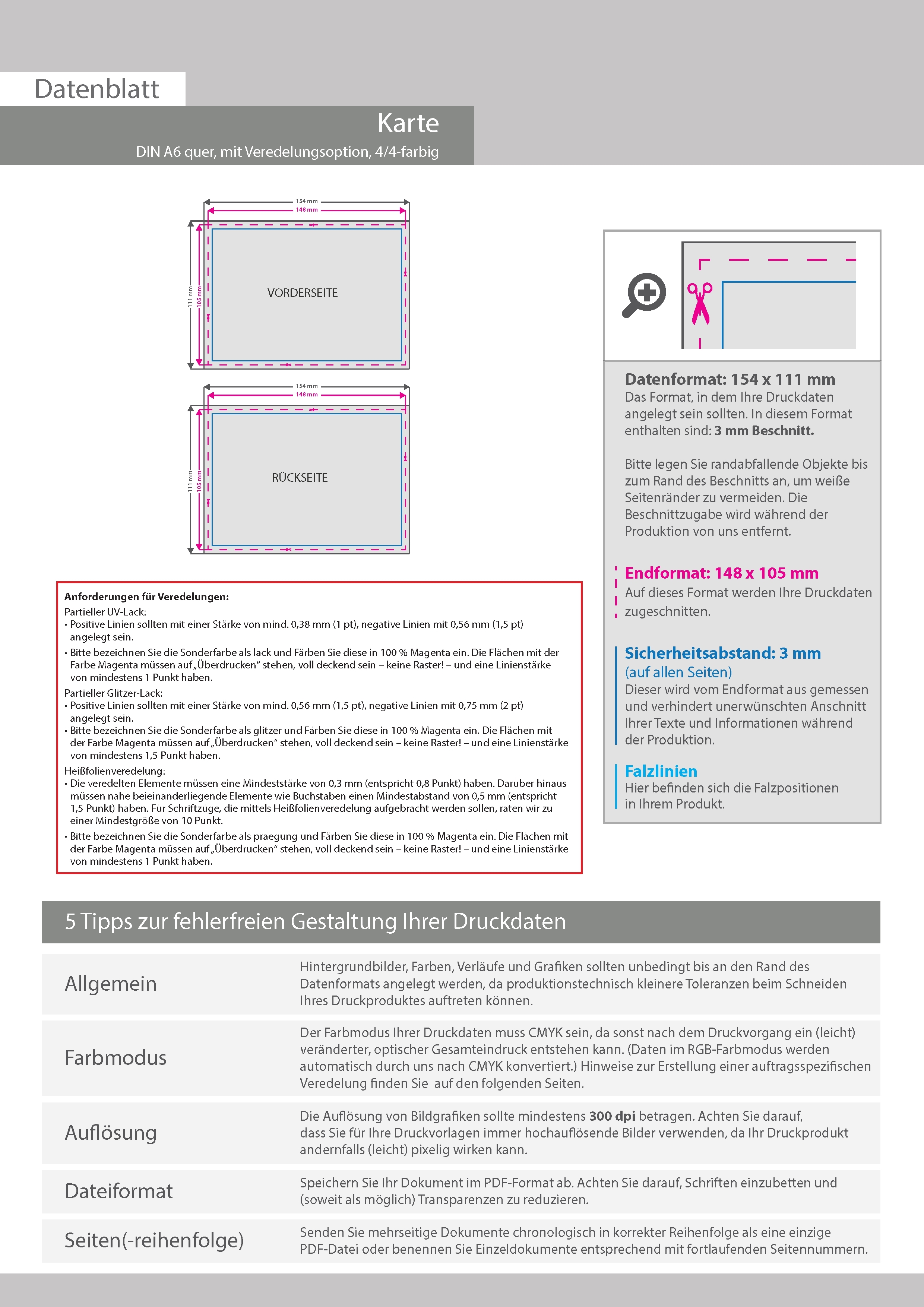 Postkarte, DIN A6 quer (14,8 x 10,5 cm), mit allen Veredelungskombinationen